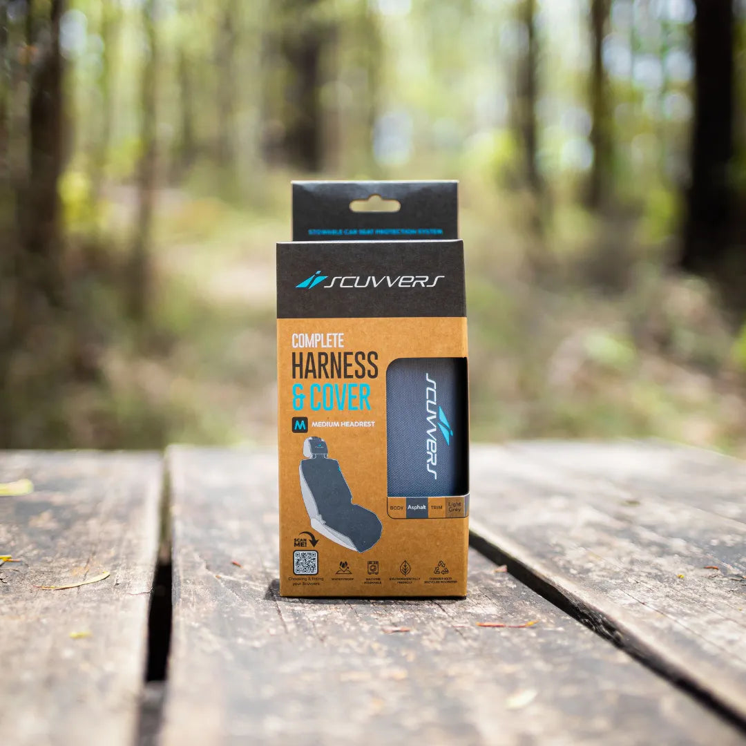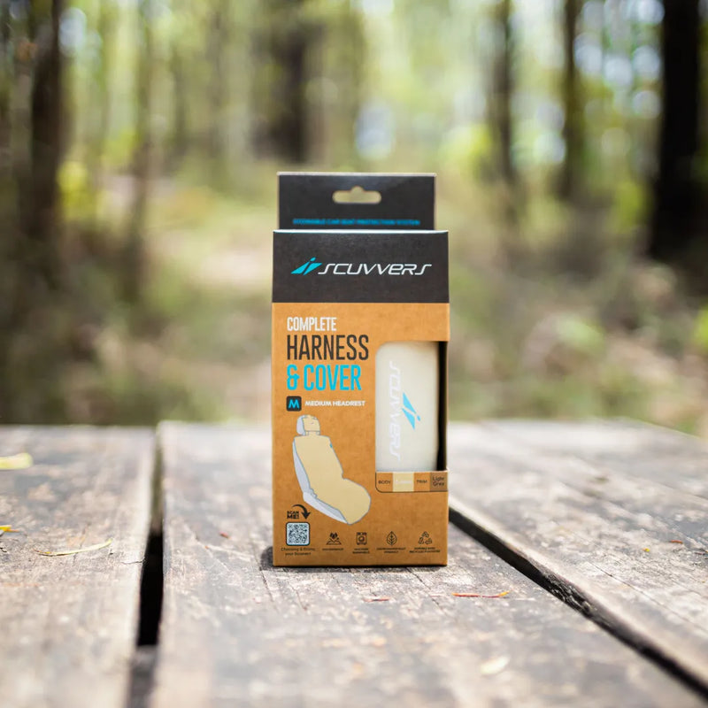 Scuvvers are very nearly universal, but because car headrests come in so many shapes and sizes, we had to create two sizes for the Harness.
