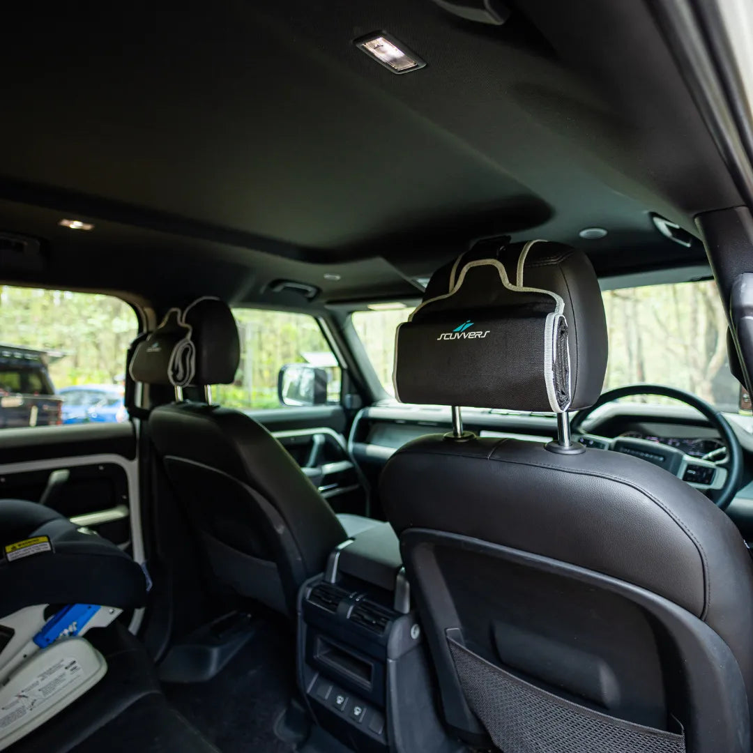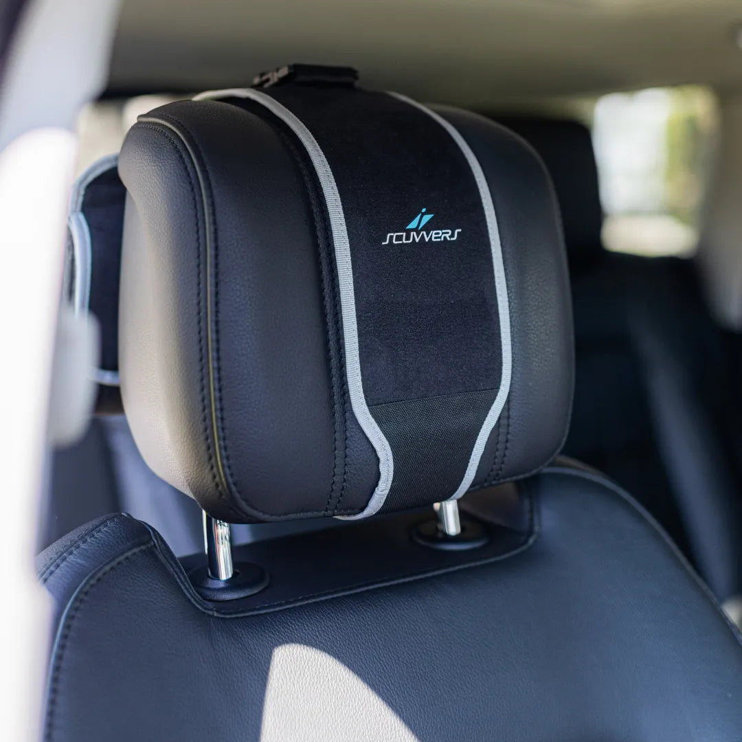 Scuvvers are very nearly universal, but because car headrests come in so many shapes and sizes, we had to create two sizes for the Harness.