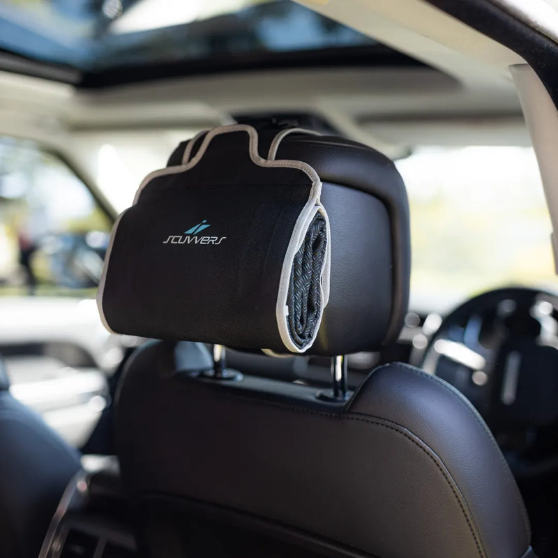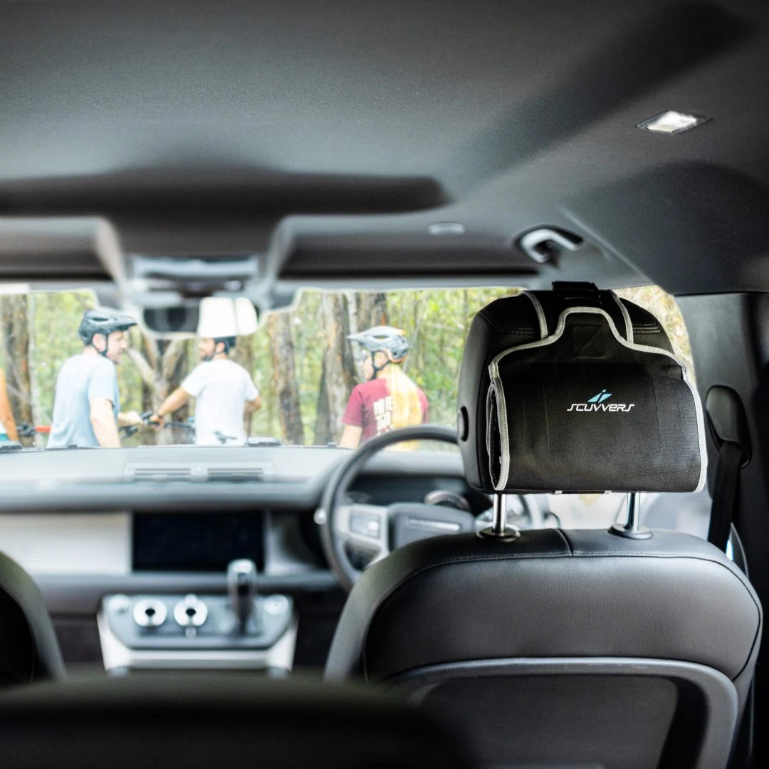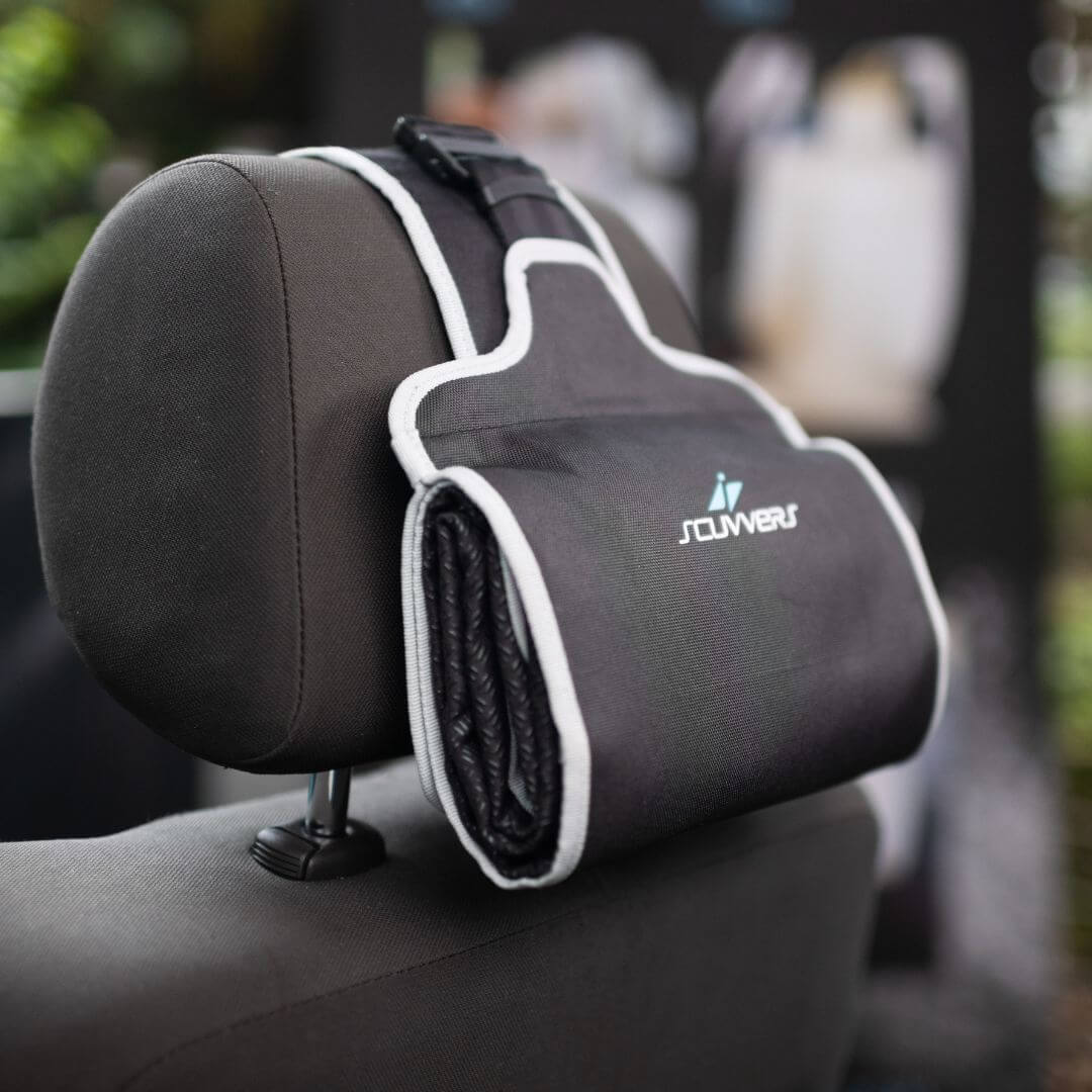 Stow your Scuvvers conveniently behind your headrest, in the glovebox, the door pocket, or your kit bag.