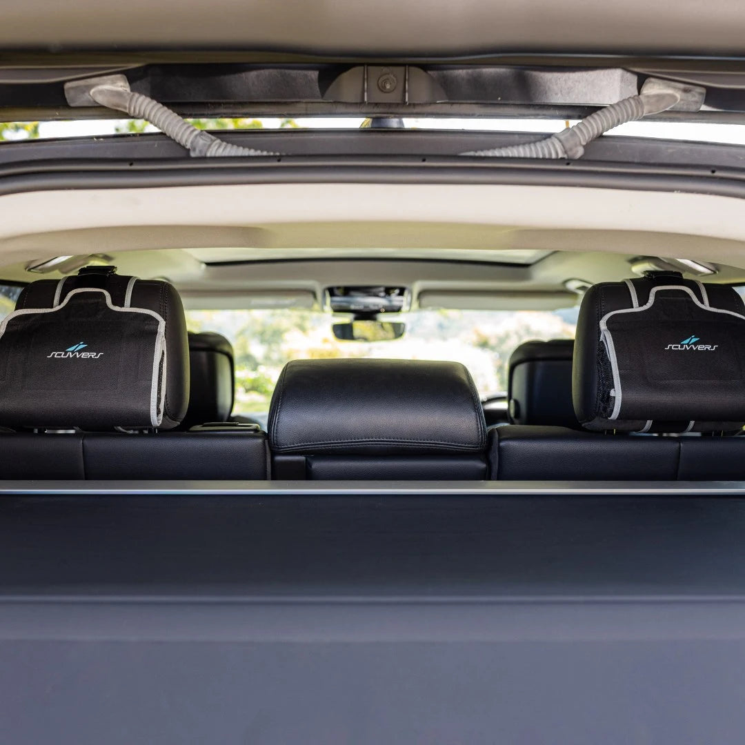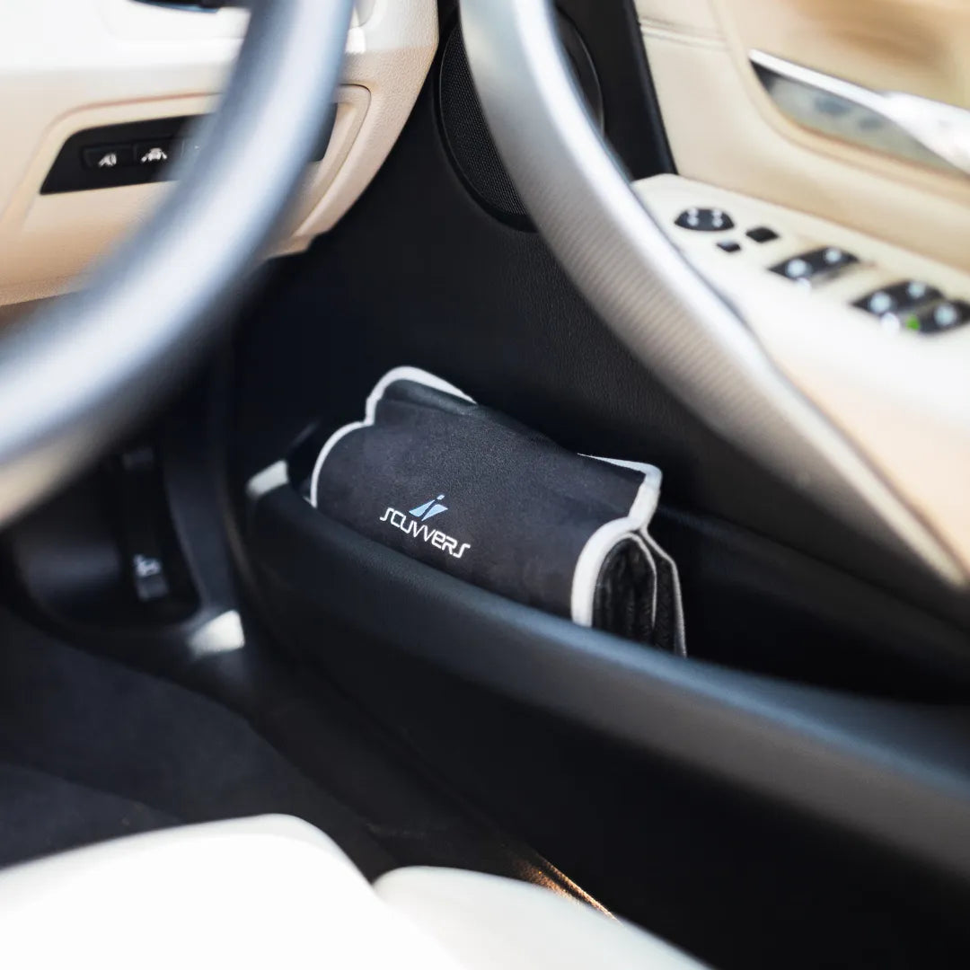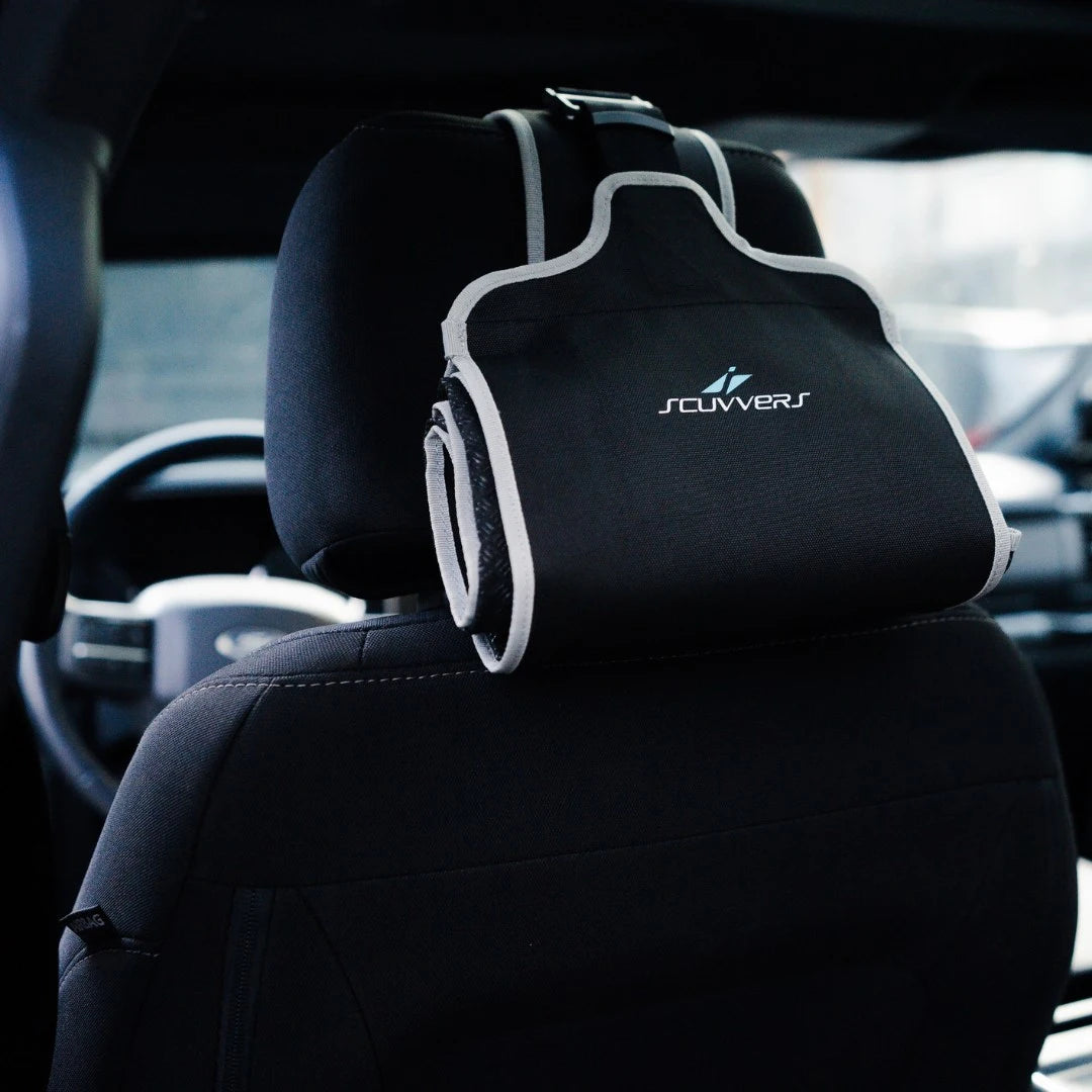 Stow your Scuvvers conveniently behind your headrest, in the glovebox, the door pocket, or your kit bag.