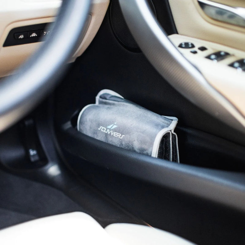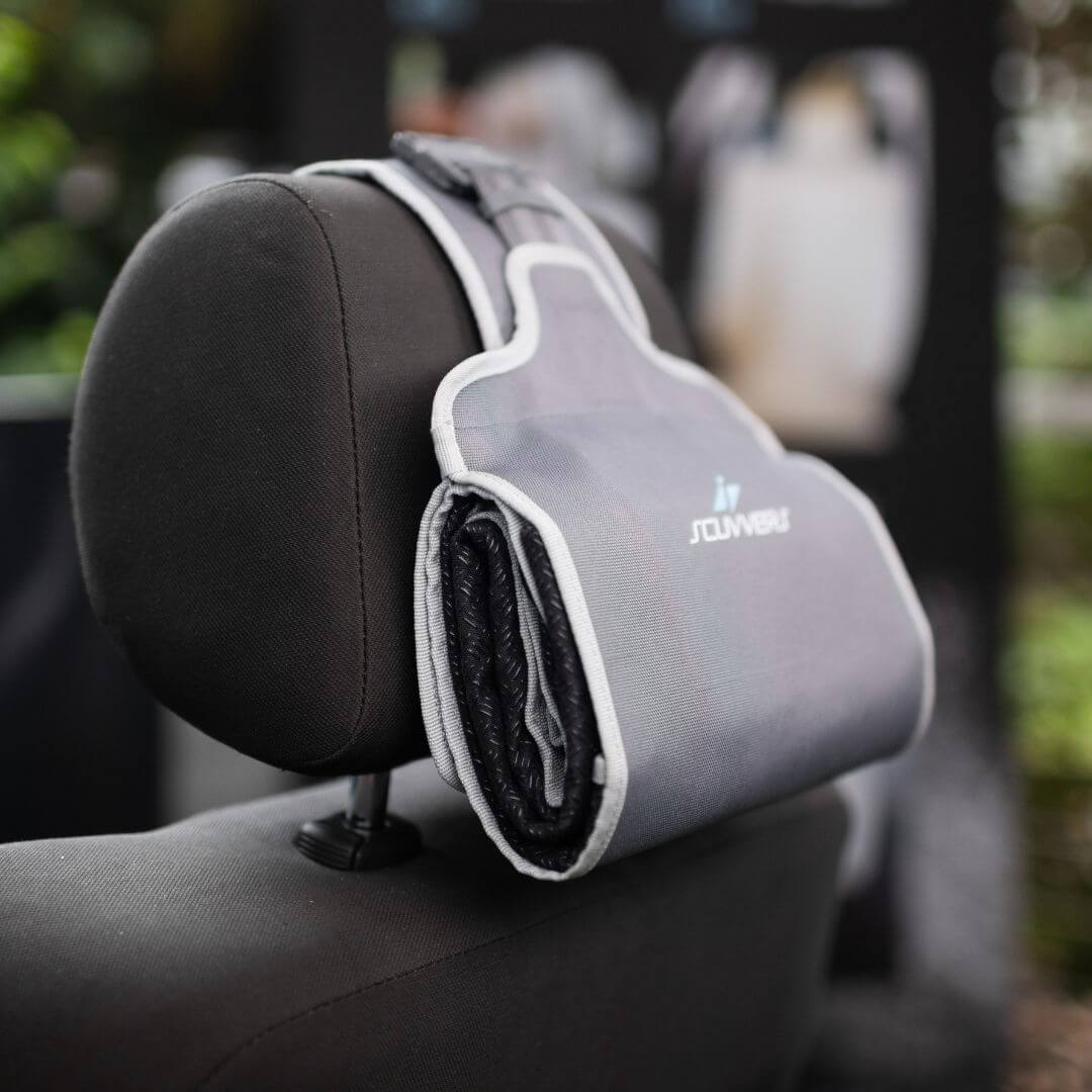 Stow your Scuvvers conveniently behind your headrest, in the glovebox, the door pocket, or your kit bag.